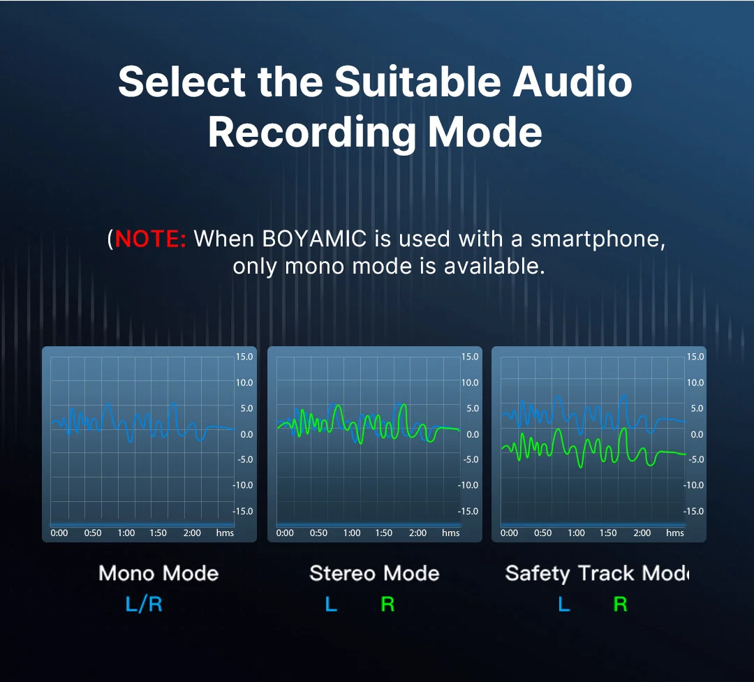 • Selectable Mono/ Stereo/ Safety Track output setting.