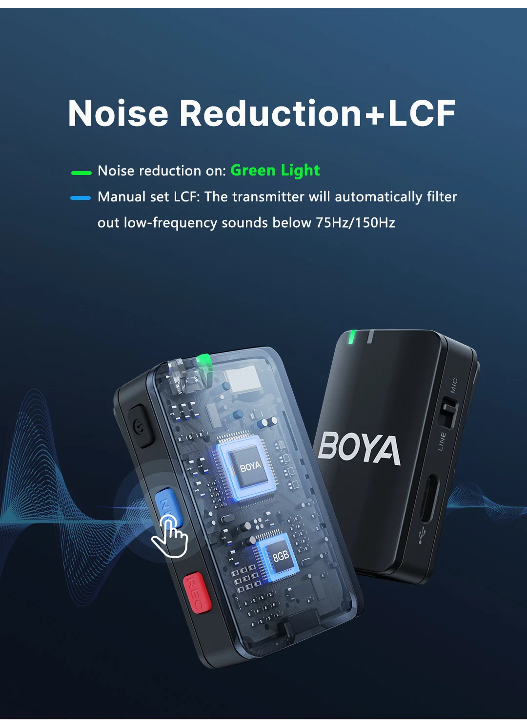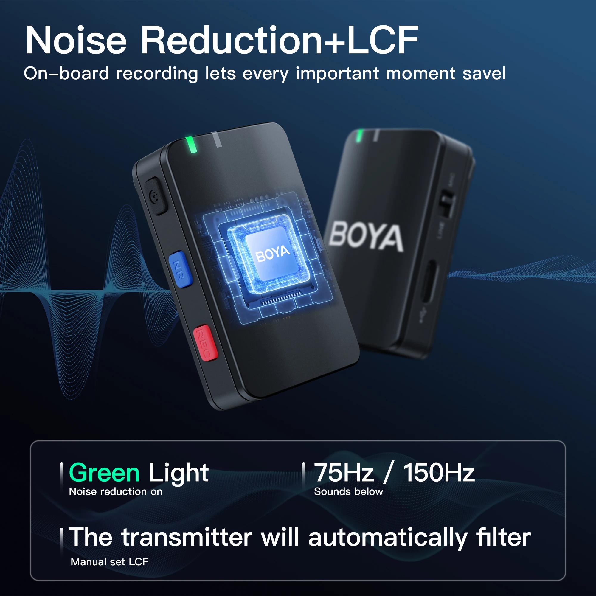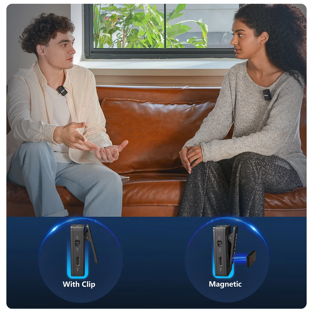 The BOYAMlC is a portable 2.4GHz wireless microphone system. ltfeatures high-performance noise cancellation, which is available forimproving the recording effect in a noisy environment. lt also boasts aremarkable onboard recording which is available for storing yourrecording files in real-time.